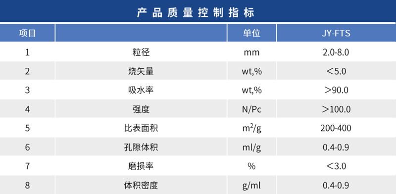 晶型:γ-Al2O3或θ-Al2O3 物理性質(zhì): 本品無毒、無味、無臭、不溶于水和乙醇。 產(chǎn)品介紹: JY-FTS型產(chǎn)品具有抗壓強(qiáng)度高、磨損小的特點(diǎn)。可根據(jù)需要調(diào)節(jié)大小、孔隙結(jié)構(gòu)、容重。廣泛應(yīng)用于吸附劑、加氫脫硫催化劑載體、加氫脫氮催化劑載體、CO耐硫移位催化劑載體等領(lǐng)域。